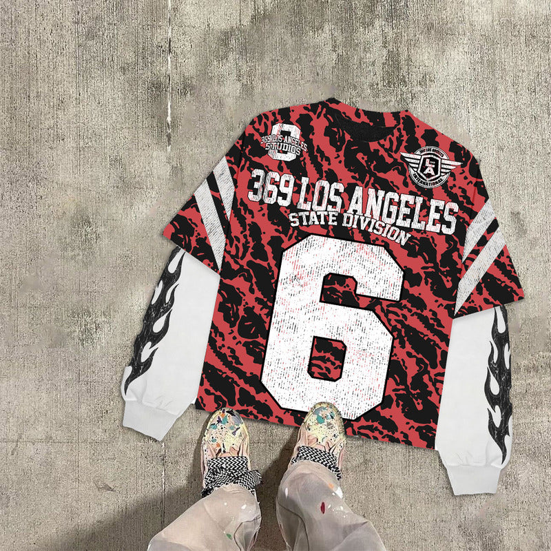 Red Tiger Double-Layer Long-Sleeve T-Shirt & Stripe Fleece Sweatpants Full Set